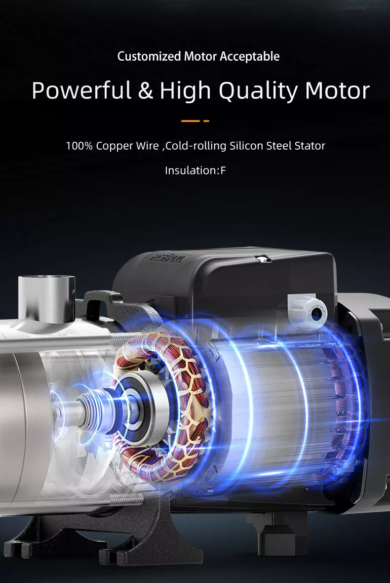 2. Η φυγοκεντρική αντλία πολλαπλών σταδίων έχει το ίδιο διαμέτρημα και βρίσκεται στην ίδια οριζόντια κεντρική γραμμή. Δεν χρειάζεται να αλλάξετε τη δομή του αγωγού. Μπορεί να εγκατασταθεί απευθείας σε οποιοδήποτε μέρος του αγωγού, το οποίο είναι εξαιρετικά βολικό για εγκατάσταση.