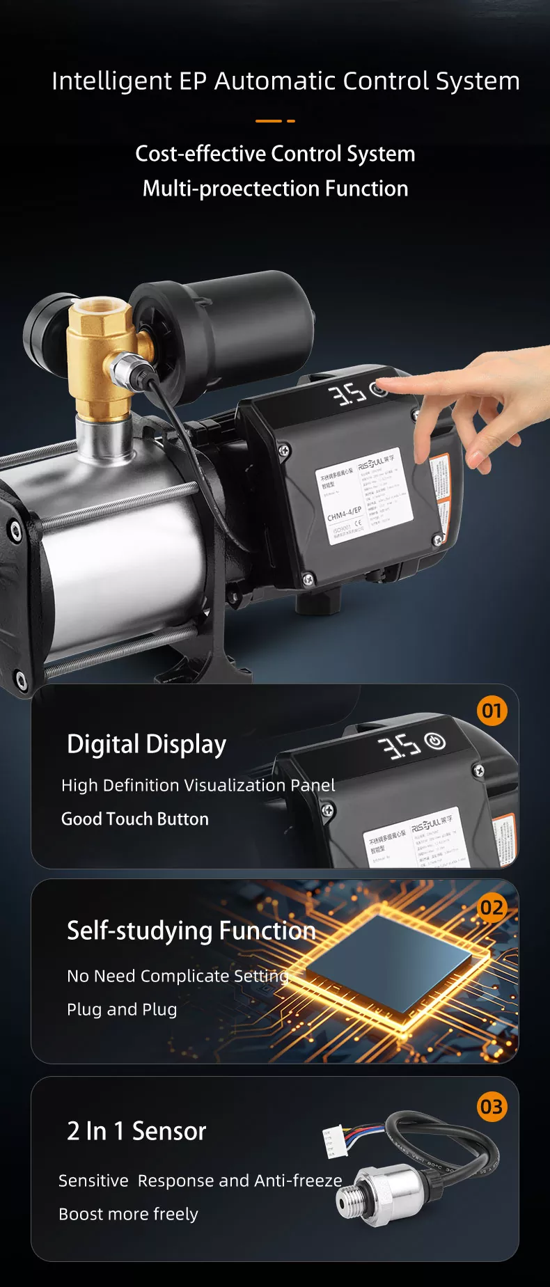 1. Η φυγοκεντρική αντλία πολλαπλών σταδίων είναι μια κατακόρυφη δομή με ένα μικρό αποτύπωμα. Το κέντρο βάρους της αντλίας συμπίπτει με το κέντρο του ποδιού της αντλίας, έτσι ώστε να τρέχει ομαλά, να έχει ελάχιστες κραδασμούς και έχει μεγάλη διάρκεια ζωής.