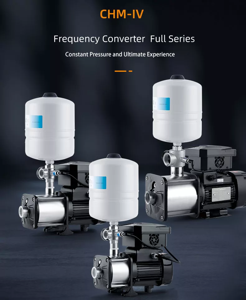 Η οριζόντια φυγοκεντρική αντλία πολλαπλών σταδίων από ανοξείδωτο χάλυβα σειράς έξυπνων μετατροπέων σειράς CHM20/IV είναι ένα σχετικά ώριμο προϊόν στην αγορά αυτή τη στιγμή, με συμπαγή δομή και σταθερή λειτουργία, χαμηλό θόρυβο λειτουργίας, απόδοση έως και 44-70%. Όλα τα εξαρτήματα διέλευσης νερού είναι κατασκευασμένα από ανοξείδωτο χάλυβα AISI304. Χρησιμοποιείται ευρέως σε