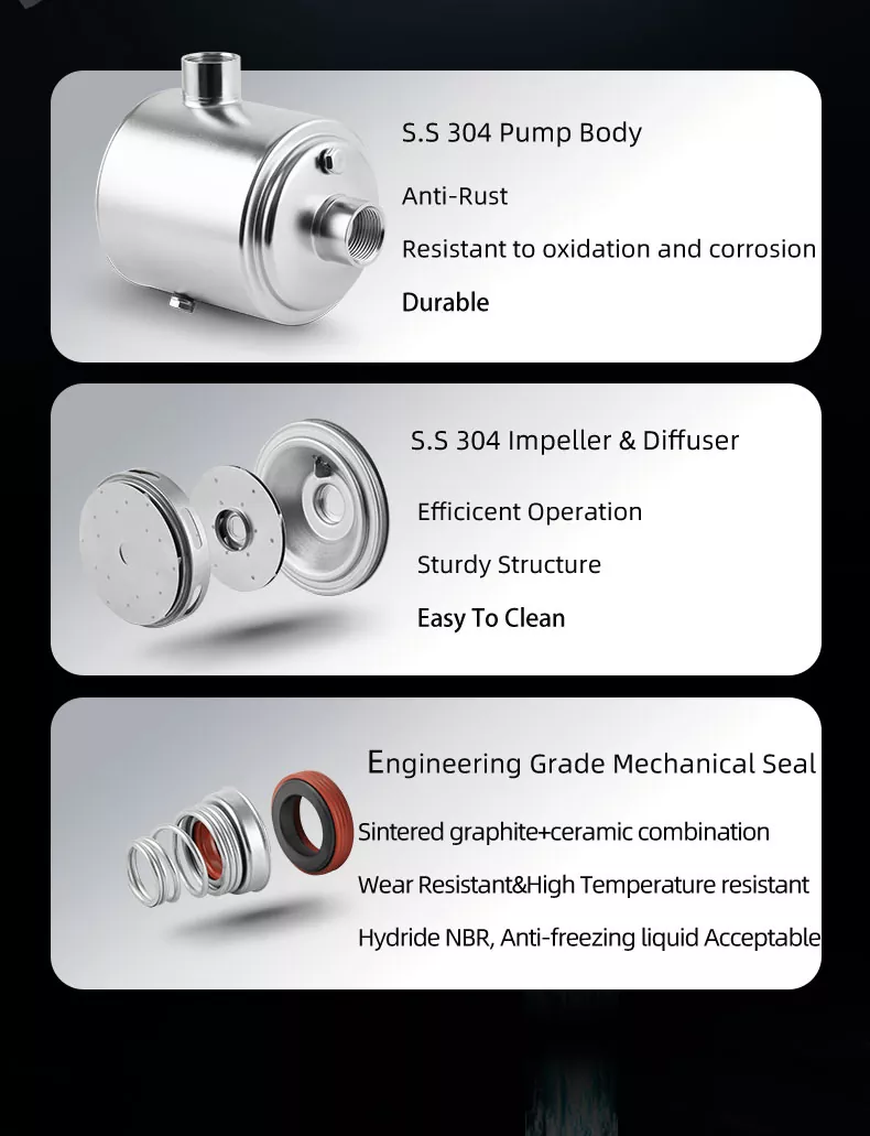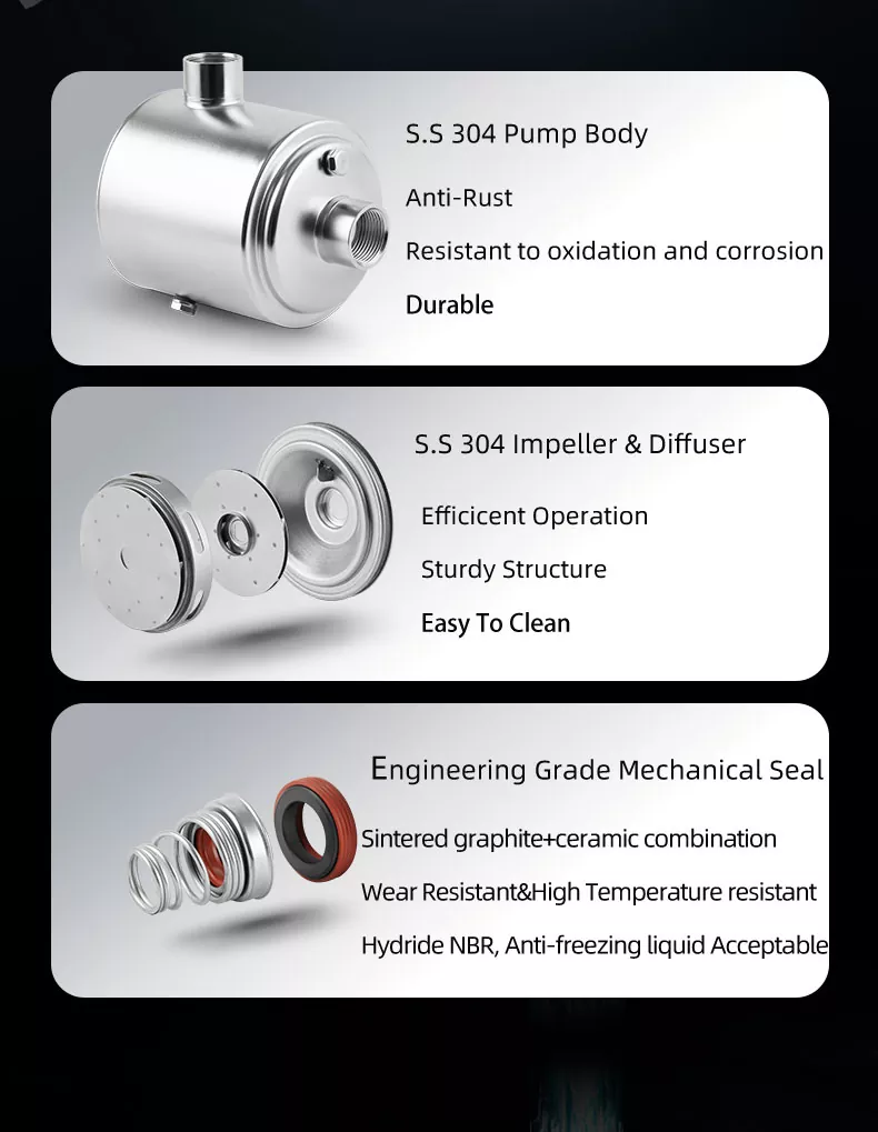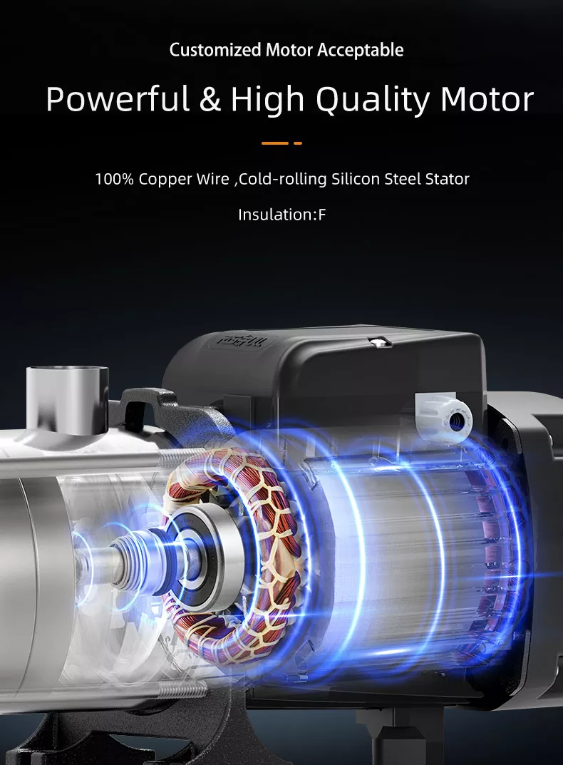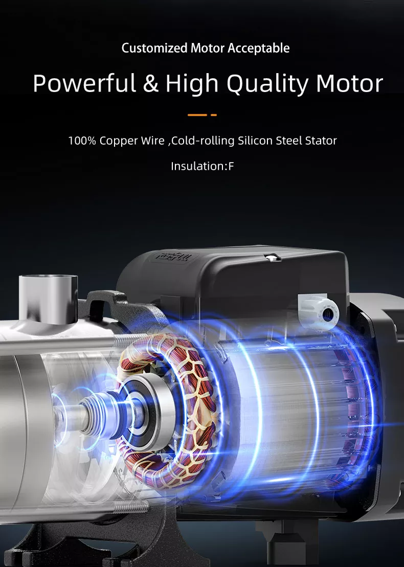 2. Στιβαρή κατασκευή: Η πολυβάθμια αντλία μας είναι κατασκευασμένη από υλικά κορυφαίας ποιότητας που εξασφαλίζουν μακροπρόθεσμη αξιοπιστία και ελάχιστες απαιτήσεις συντήρησης, εξοικονομώντας χρόνο και χρήμα.