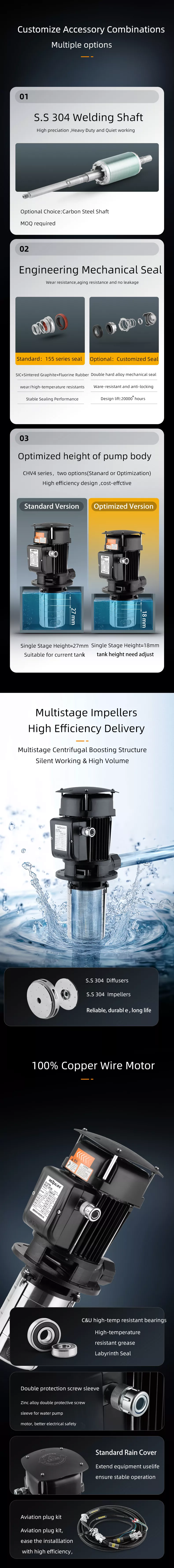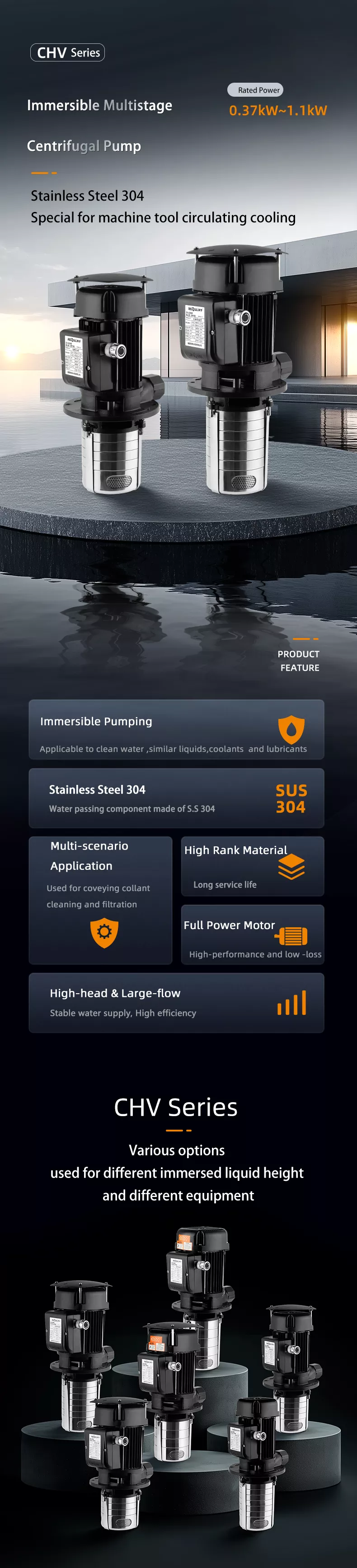 Ακολουθεί μια εισαγωγή της σειράς CHV Η βυθιζόμενη φυγόκεντρη αντλία πολλαπλών σταδίων CHV, ειδικά σχεδιασμένη για άντληση λιπαντικών ψύξης για εργαλειομηχανές και για τοποθέτηση πάνω από δεξαμενές με τη στοίβα αντλίας βυθισμένη στο αντλούμενο υγρό. Οι αντλίες STAIRS SBK διατίθενται με διάφορα μεγέθη αντλιών και διάφορους αριθμούς σταδίων για να παρέχουν τη ροή, την πίεση και το μήκος που απαιτείται.